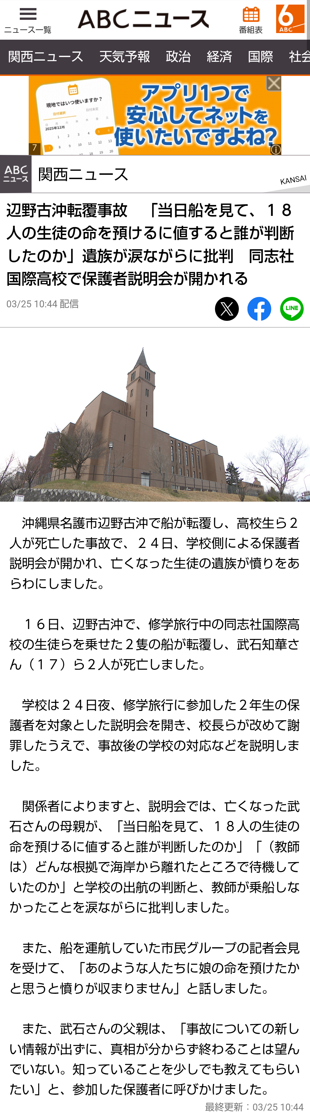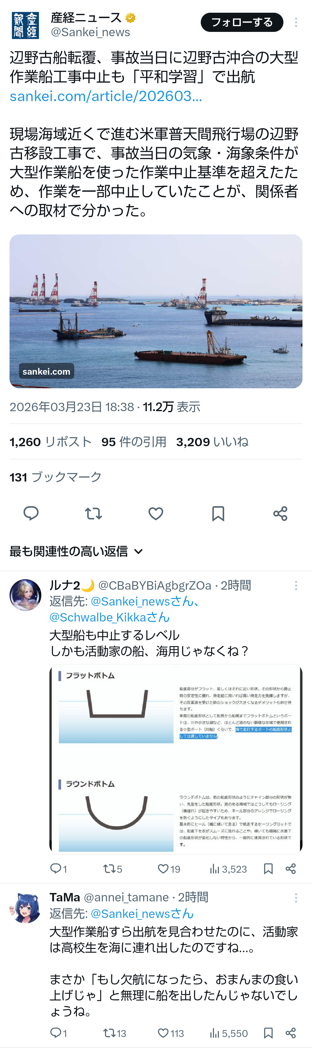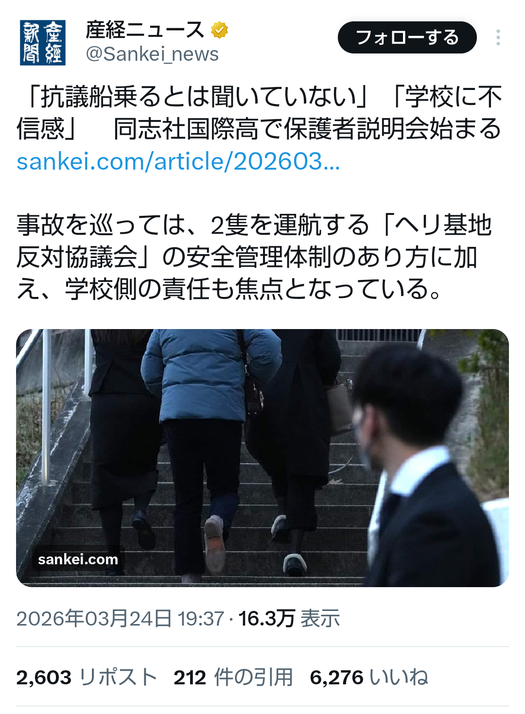 | … | 262無題Name名無し 26/03/25(水)01:04:03No.789100+>「あんな船に乗せたくなかった…」 辺野古沖転覆で同志社国際高が説明会 保護者ら憤り |