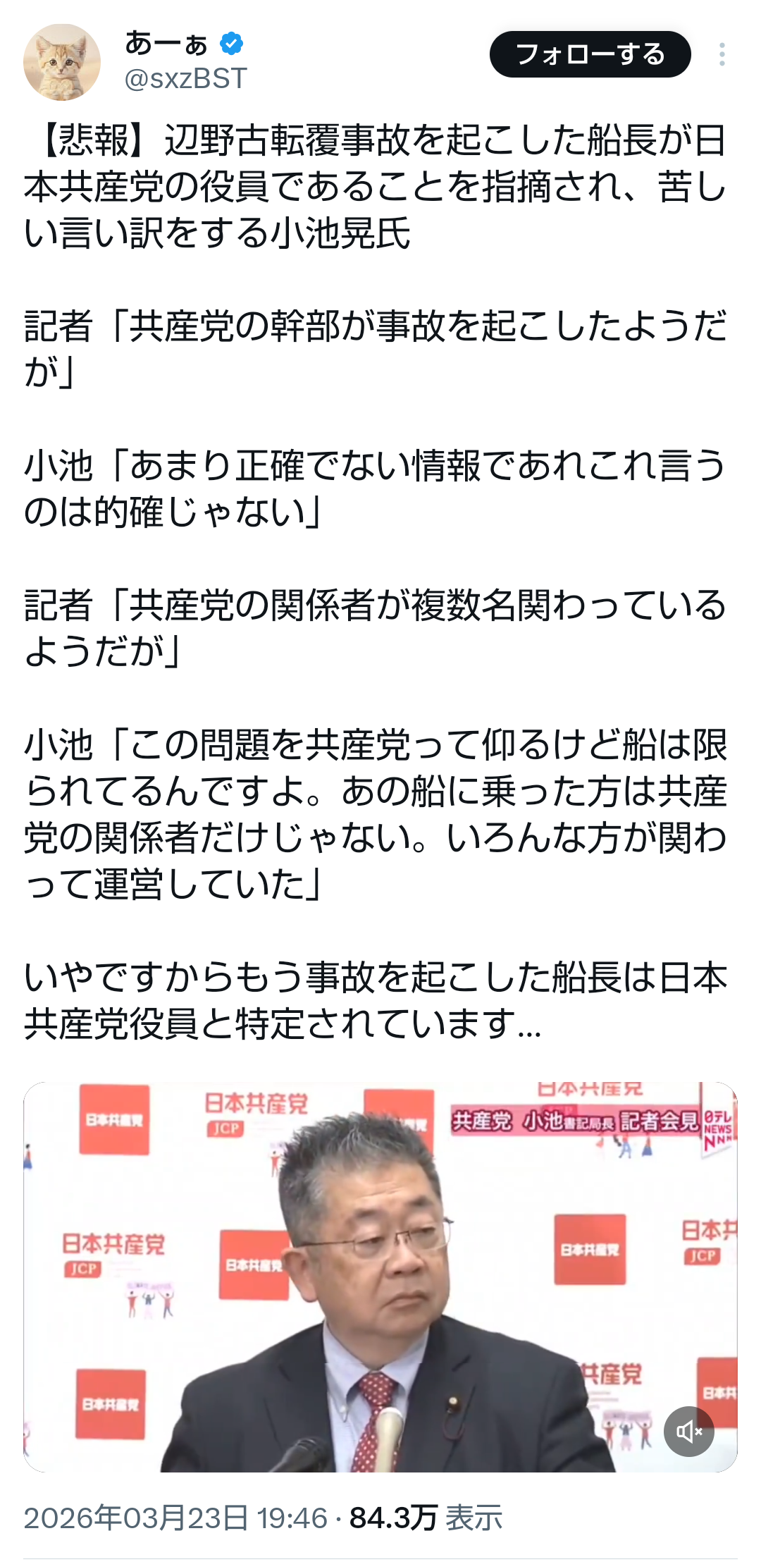 | … | 267無題Name名無し 26/03/25(水)05:09:37No.789106+>>「先生が船に同乗しなかったことに対する質問はものすごくあった。 |