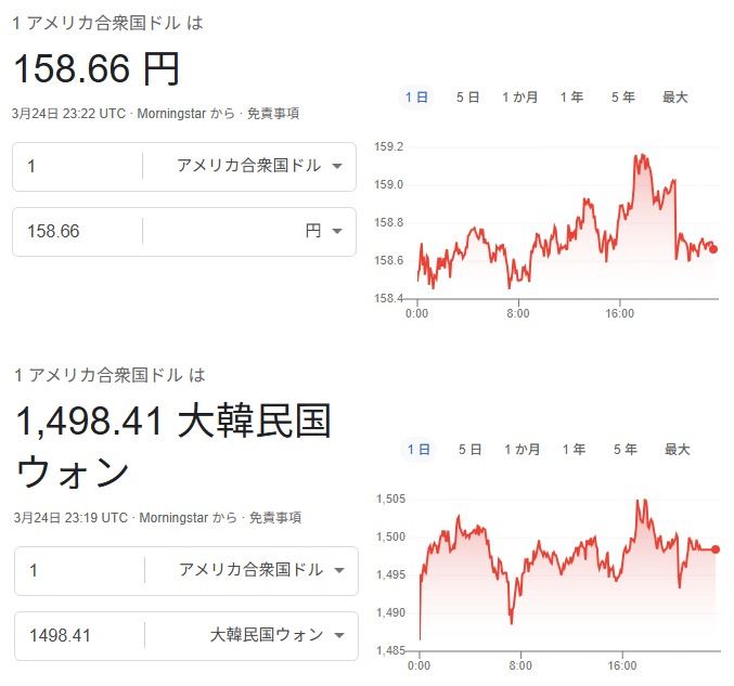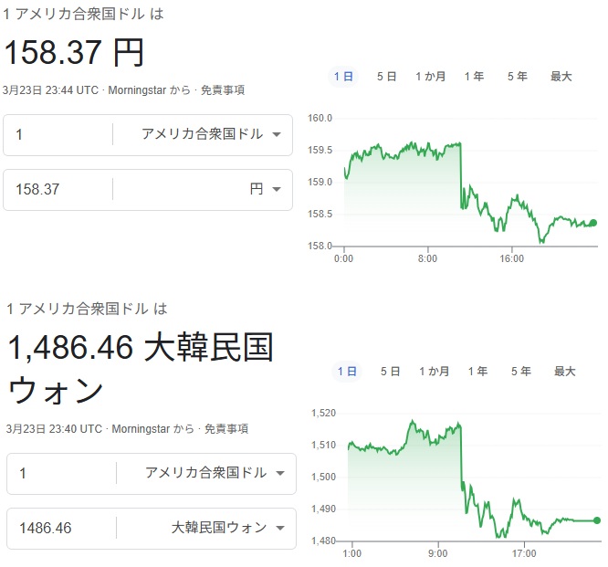 | … | 53無題Name名無し 26/03/23(月)15:33:46No.788848+ 1774247626903.jpg-(105404 B) ドル円も金曜までは157円半ばだったのがドル高に振れてるわぁ… |