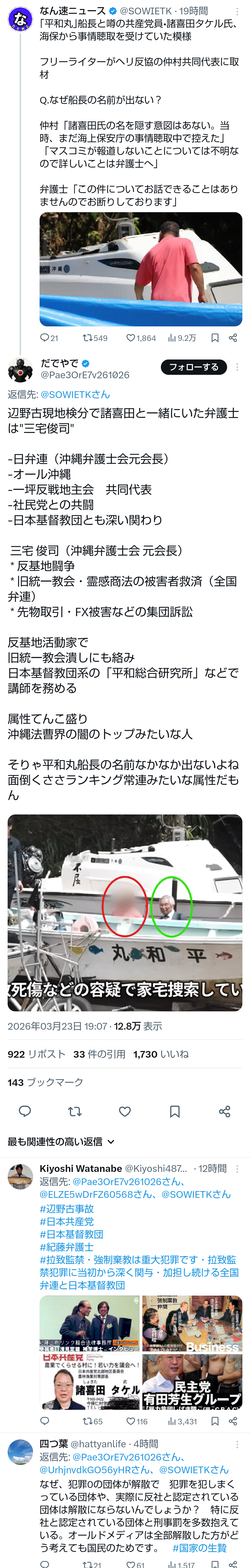 | … | 63無題Name名無し 26/03/23(月)16:40:36No.788858そうだねx4 1774251636141.jpg-(1633256 B) >抗議船転覆と同志社国際生徒死亡の火種「なぜ告発削除」動機追う |