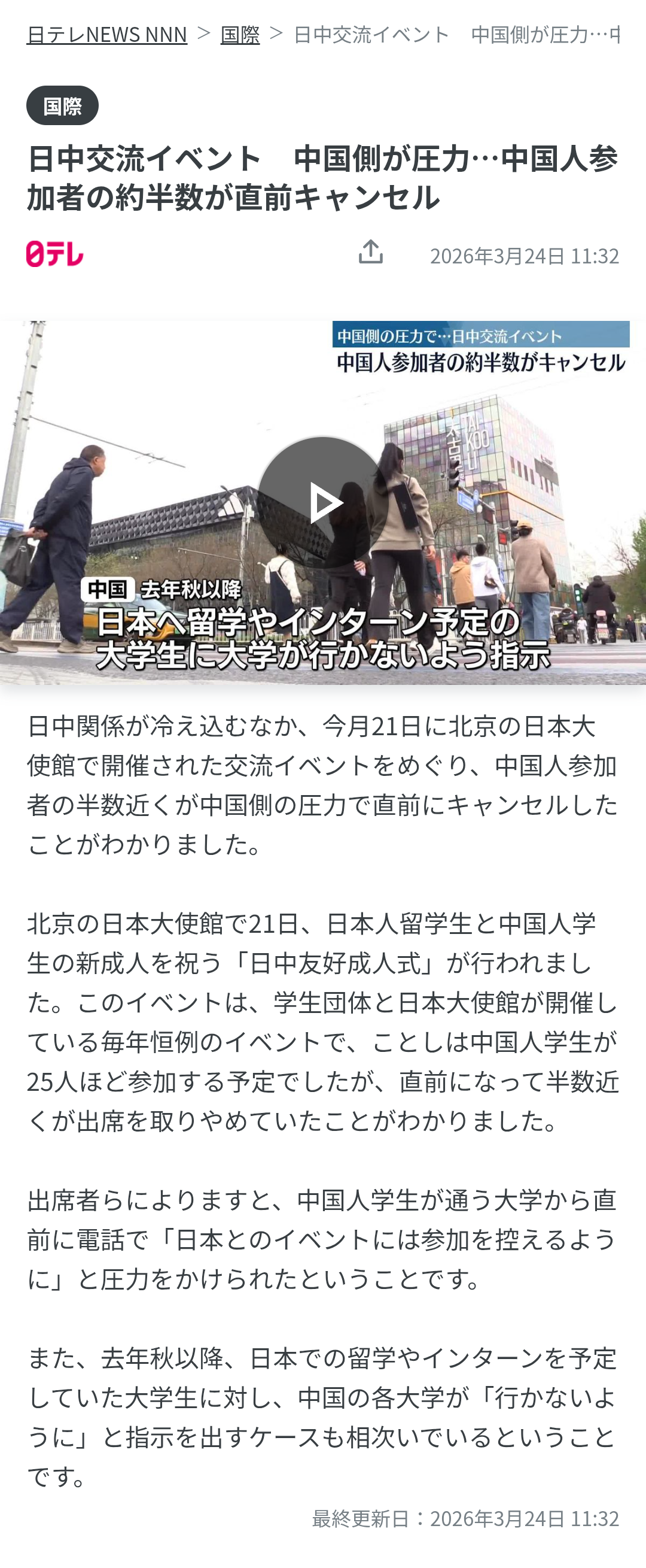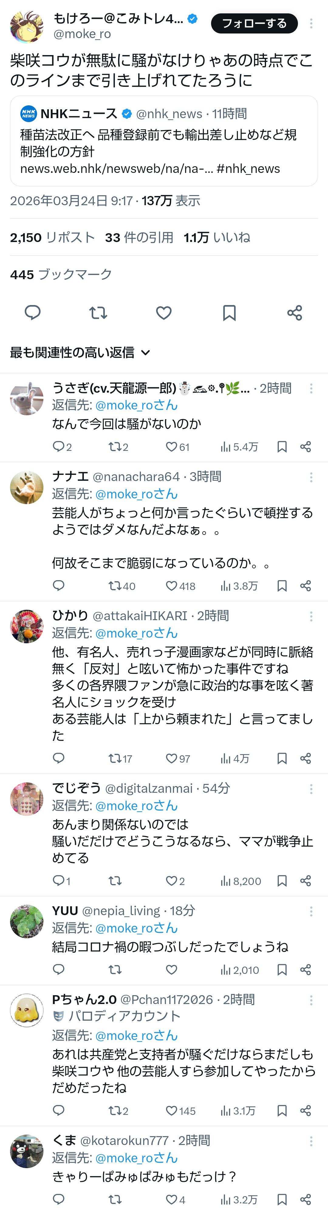 | … | 39無題Name名無し 26/03/23(月)13:33:05No.788829+>要するに総領事のバカ発言により日本のSNSで中国批判が盛り上がってそれが習近平まて伝わったからやらざる得なくなった…あいつが悪いな |