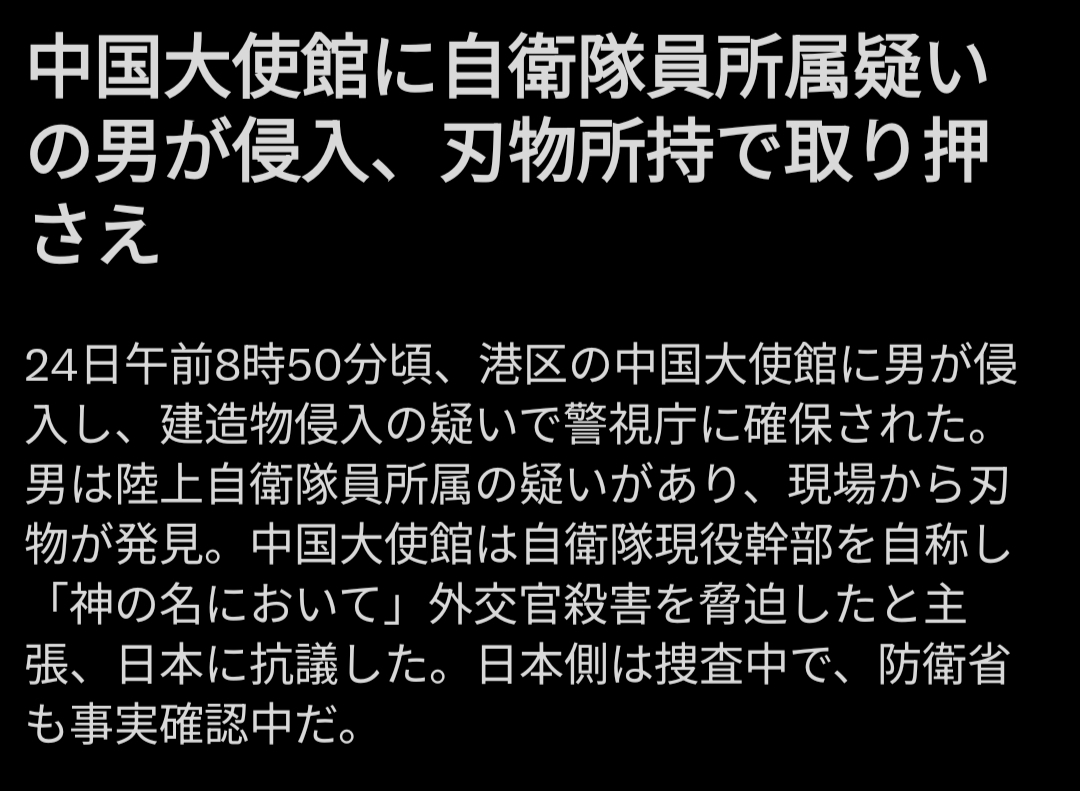 | … | 253無題Name名無し 26/03/24(火)22:51:08No.789091そうだねx7むしろ俺は自衛隊という単語と「神」の言葉で安倍さん殺したアイツの類型に見えてきたよ |