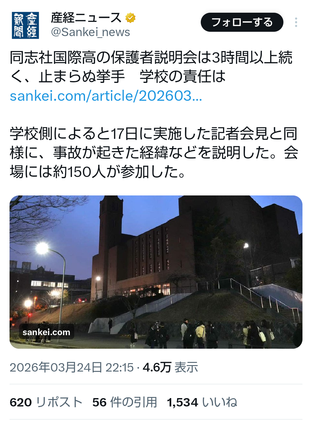 | … | 254無題Name名無し 26/03/24(火)23:08:36No.789092+ 1774361316756.png-(806370 B) >同志社国際高の保護者説明会は3時間以上続く、止まらぬ挙手 学校の責任は |