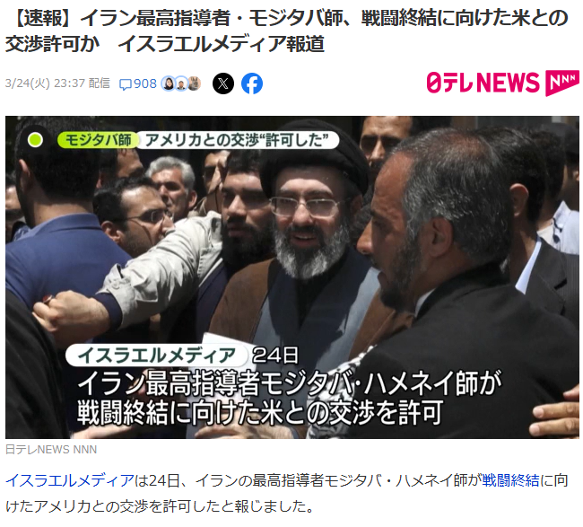 | … | 344無題Name名無し 26/03/25(水)14:13:00No.789196+>日本のマスゴミはイラン側の要求を隠すだろうな |