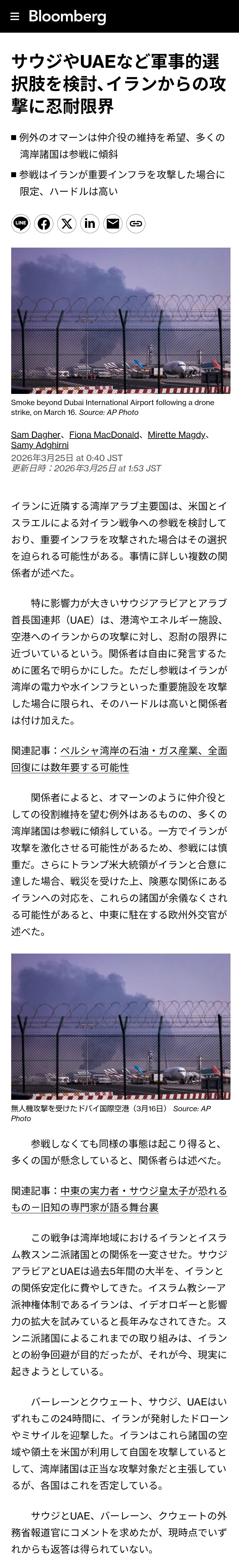 | … | 327無題Name名無し 26/03/25(水)13:25:13No.789179そうだねx2 1774412713495.png-(2599166 B) >サウジやUAEなど軍事的選択肢を検討、イランからの攻撃に忍耐限界 |
