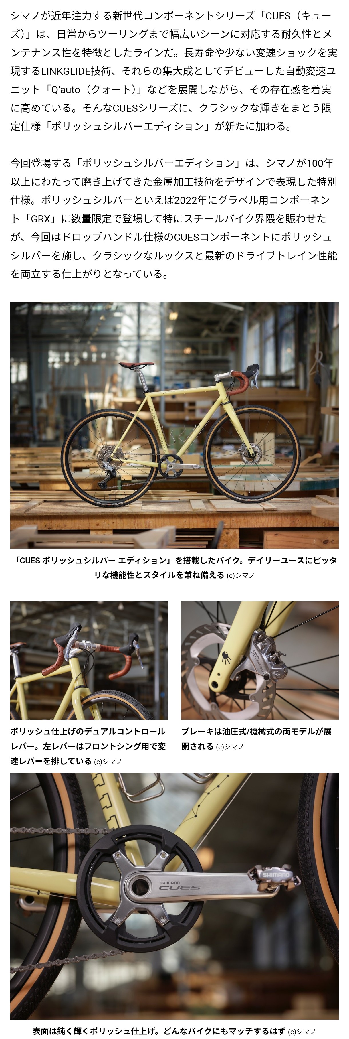 … | 7無題Name名無し 25/10/12(日)16:55:17 IP:153.191.*(ocn.ne.jp)No.350832+ 1760255717081.jpg-(208631 B) ![]() 最新のフレームにはシルバー系は合わないし、シルバー系が合うフレームを使っているマニア層は、自分もそうだけどシマノの7700・7800やカンパ系、現行に近づけたいならマイクロシフトのセントスとか一通りは確保してるだろうから、案外不足は感じないんじゃないのかな? |