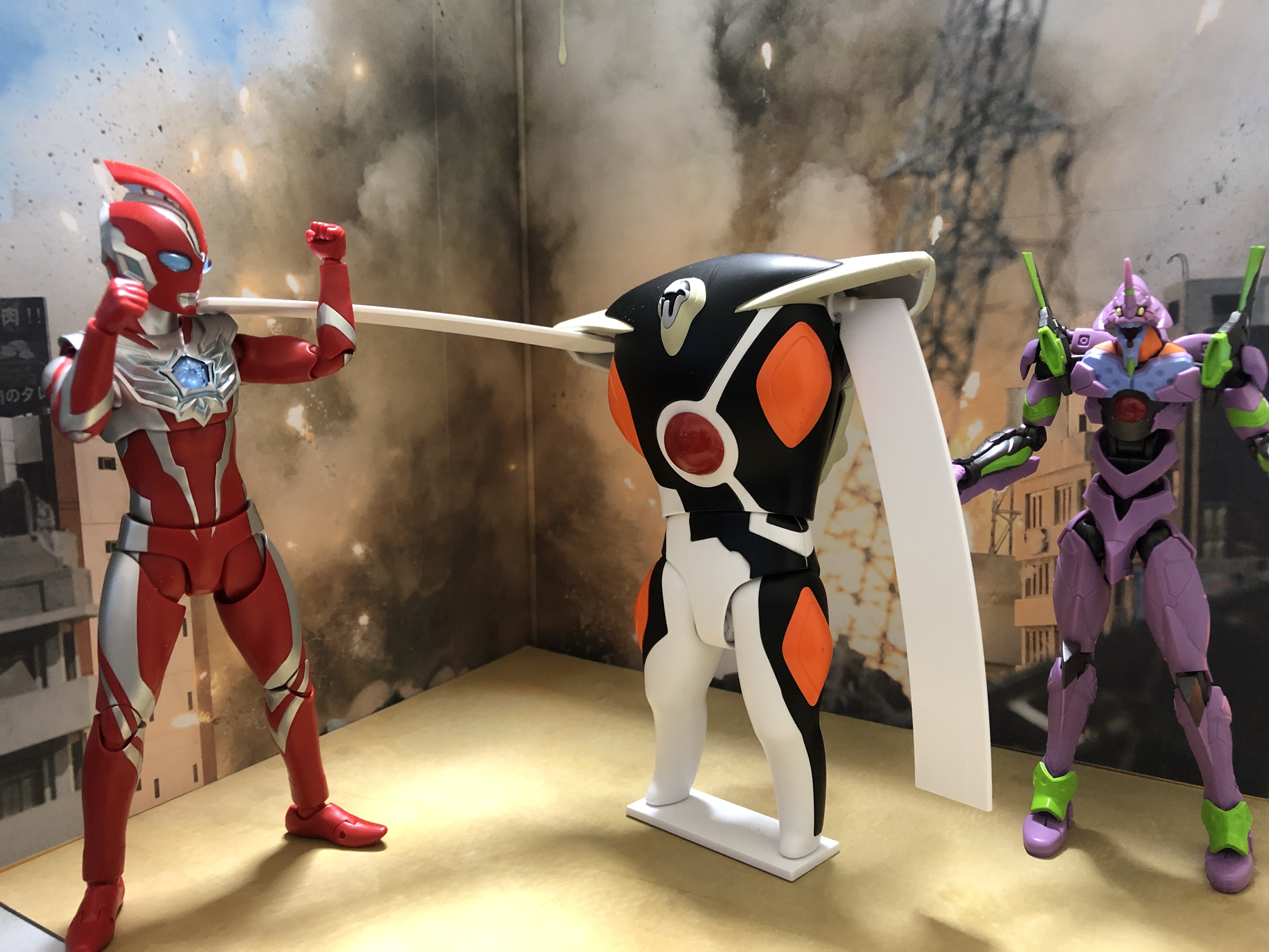 | … | 830無題Name名無し 26/03/02(月)17:52:32 IP:116.65.*(home.ne.jp)No.3997155そうだねx1 1772441552485.jpg-(2170570 B) Eva Frame は 13cm 弱、と小柄なアーツや figma と同じくらいのサイズなんで、体の厚みのあるゼルエルだとウルトラアーツと絡ませても悪くない感じ |