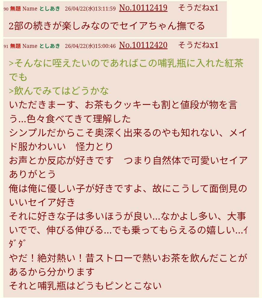 | … | 3無題Nameとしあき 26/04/23(木)12:58:12No.10112639そうだねx1セイアちゃぁぁぁん(口にちゅぅぅぅ |