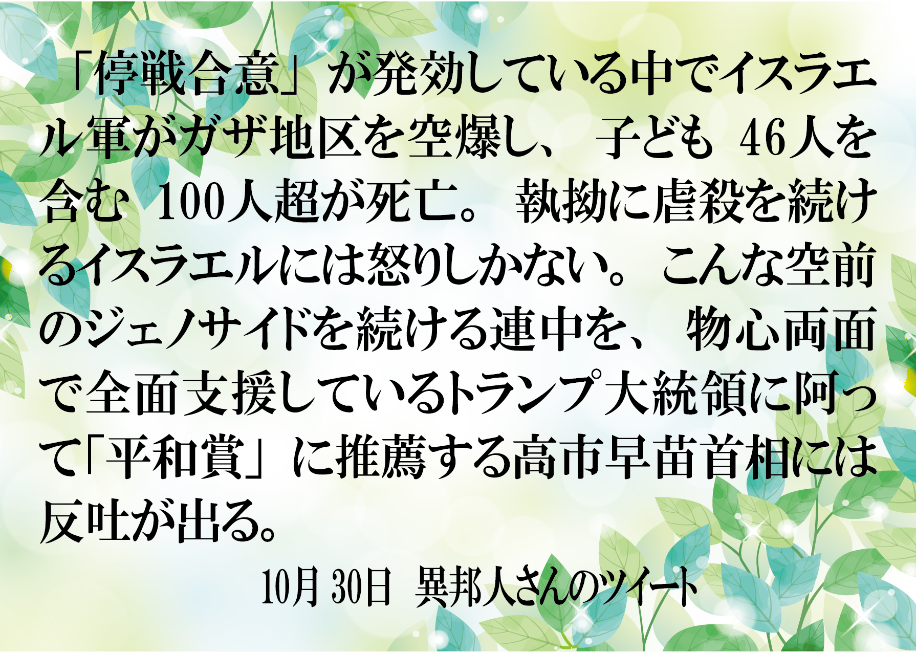 今、日本は、高市統一教会極右政権によって戦争への道へと突き進んでいます。