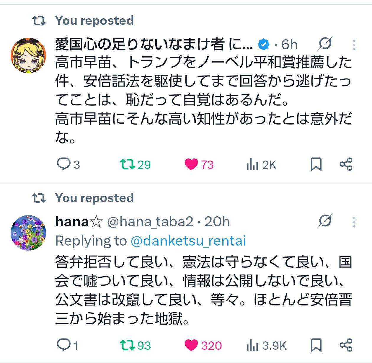| … | 36無題Name名無し 25/11/18(火)12:11:33 IP:133.106.*(ipv4)No.2677118+自民党の発言が |