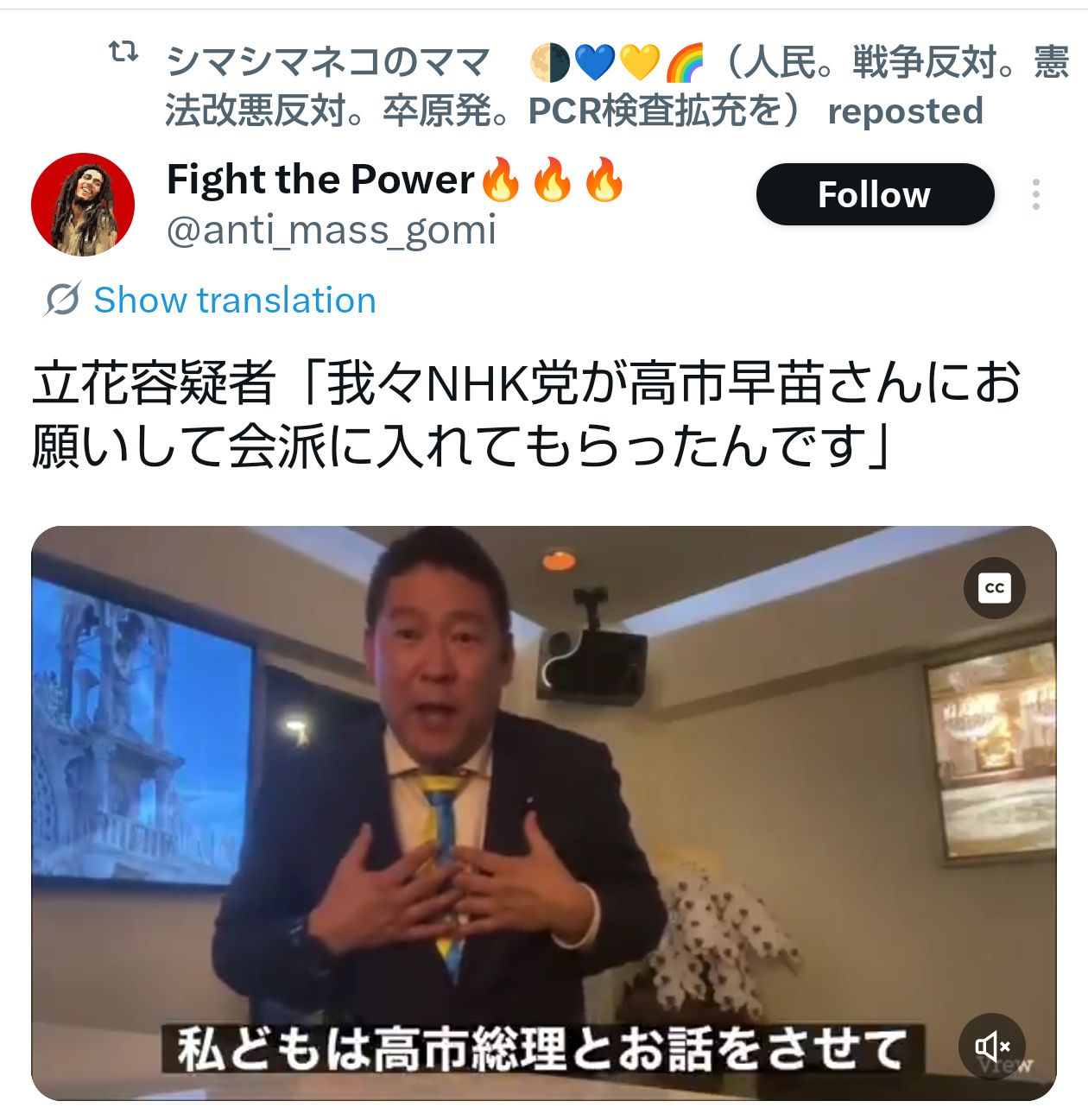 高市極右ネオナチ政権誕生を許したのはあなた方の責任。