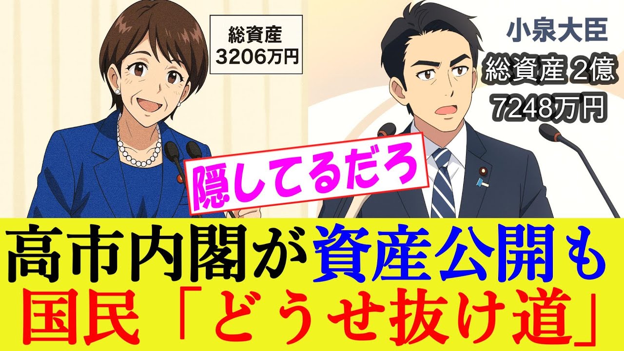 【高市内閣 閣僚の資産額一覧】閣僚19人の平均資産は6641万円 小泉防衛大臣・・・レス2件省略。全て読むには返信ボタンを押してください。