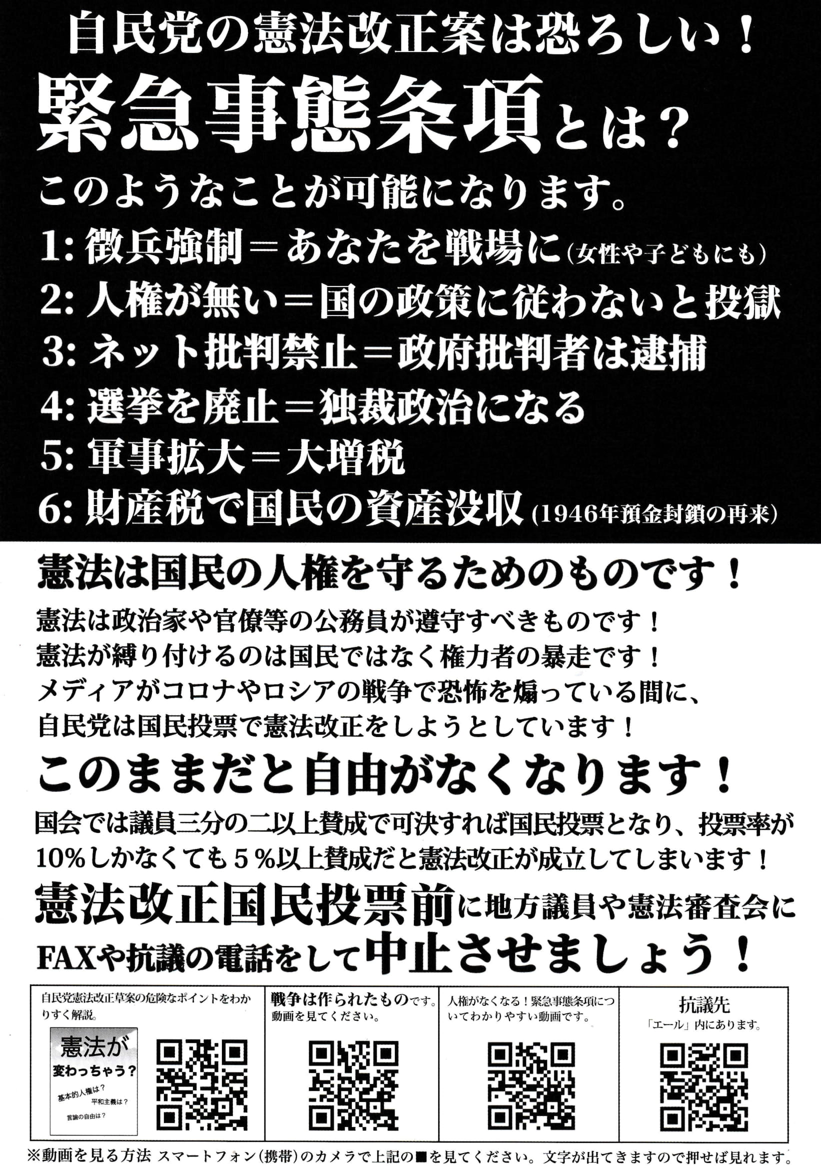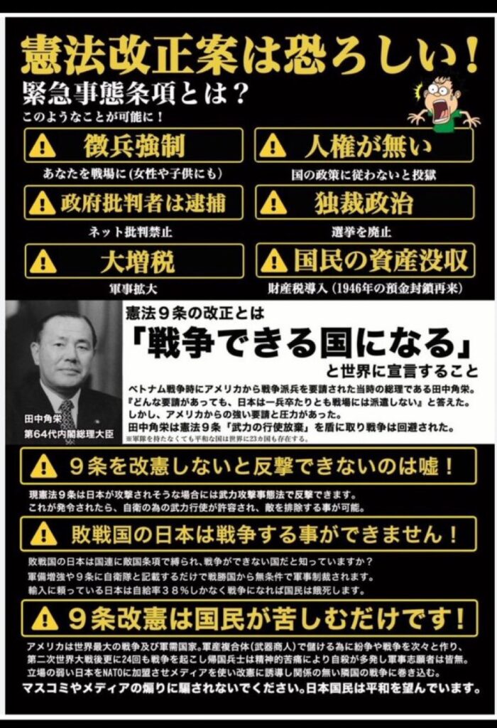 | … | 19無題Name名無し 25/11/13(木)13:55:49 IP:58.158.*(ucom.ne.jp)No.2675994+ 1763009749700.jpg-(159520 B) 「緊急事態条項」は国民が犠牲になる「戦争条項」!権力者に絶対に与えてはならない! | 禍福はあざなえる縄のごとし |