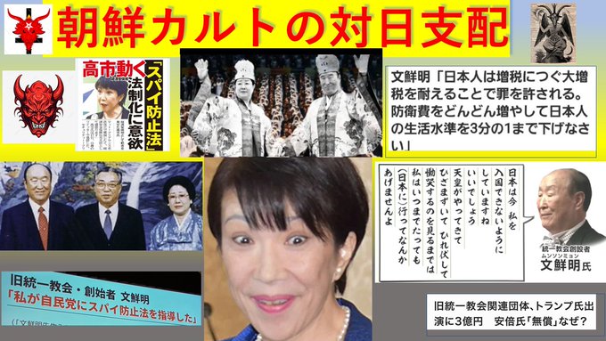 統一教会に支援される高市が、統一教会の教義の通り国民の生活水準を3分の1に引き下げ、軍備を倍増し、戦争を引き起こそうとしている。レス9件省略。全て読むには返信ボタンを押してください。