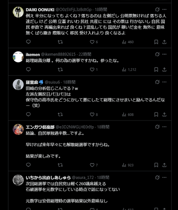 で、高市支持者の皆さんのコメントを画像で添付します。