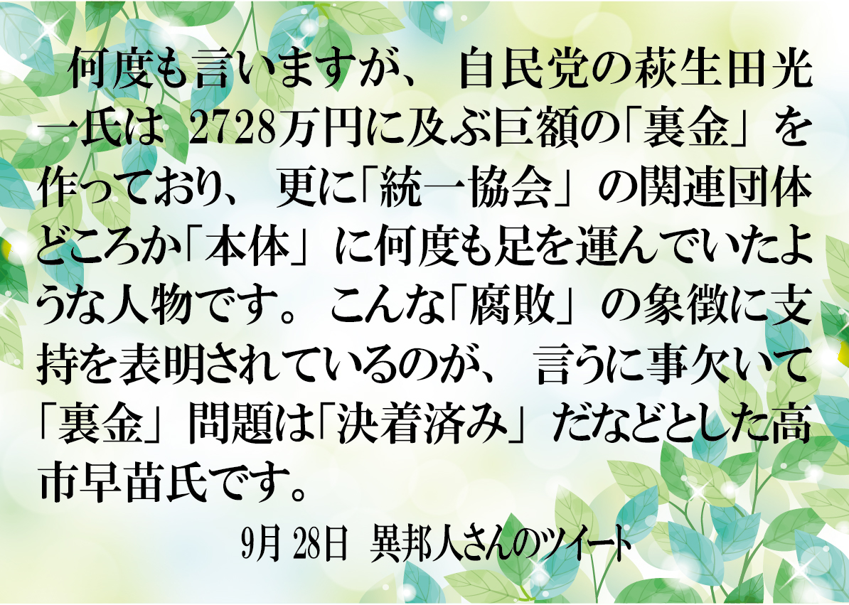 小林さんを任命した高市さんご自身も、統一教会にパー券をたっぷり買ってもらっていたのに、忘れている?