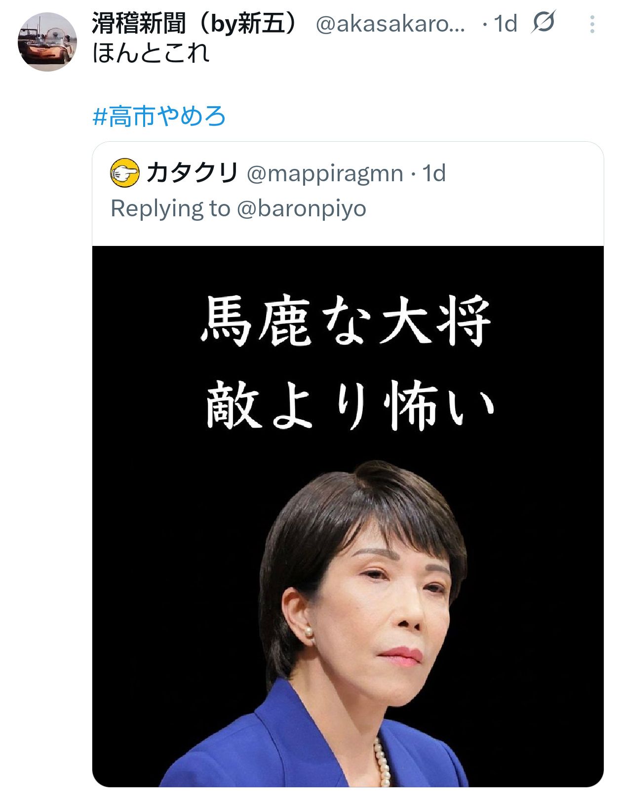これで、高市カルトを引き摺り下ろそう。