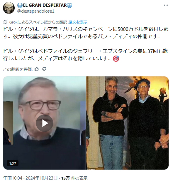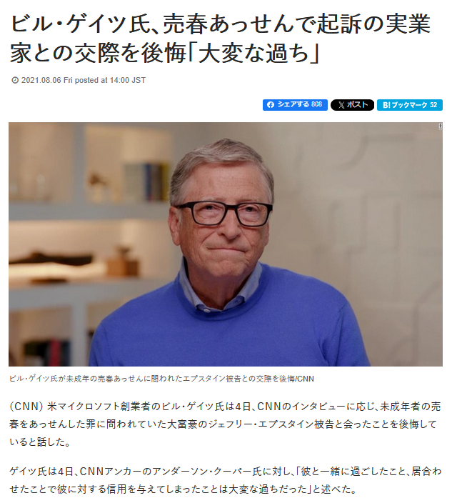 … | 931無題Name名無し 25/08/20(水)12:51:53 IP:153.137.*(ocn.ne.jp)No.2652502そうだねx9 1755661913510.png-(301469 B) ![]() >ビル・ゲイツ氏、売春あっせんで起訴の実業家との交際を後悔「大変な過ち」 |