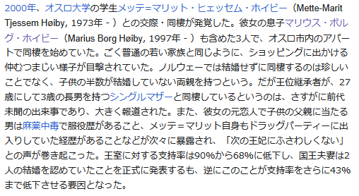 … | 958無題Name名無し 25/08/20(水)14:25:47 IP:219.112.*(mvno.net)No.2652530そうだねx2>マリウス・ボルグ・ホイビーはノルウェー皇太子妃の連れ子で次期国王の継子 |