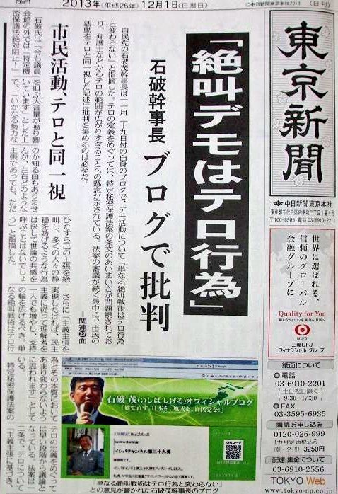 <前略>デモは7月下旬以降、官邸前などで複数回開催。石破氏は周囲に「日本政治の歴史で『総理辞めるな』というデモは初めてではないか」と語った。「俺はこの国が『右』に席巻されるのが嫌だ。この国は左に行って潰れたことはないが、右に行って潰れた歴史がある。何があっても繰り返してはいけない」