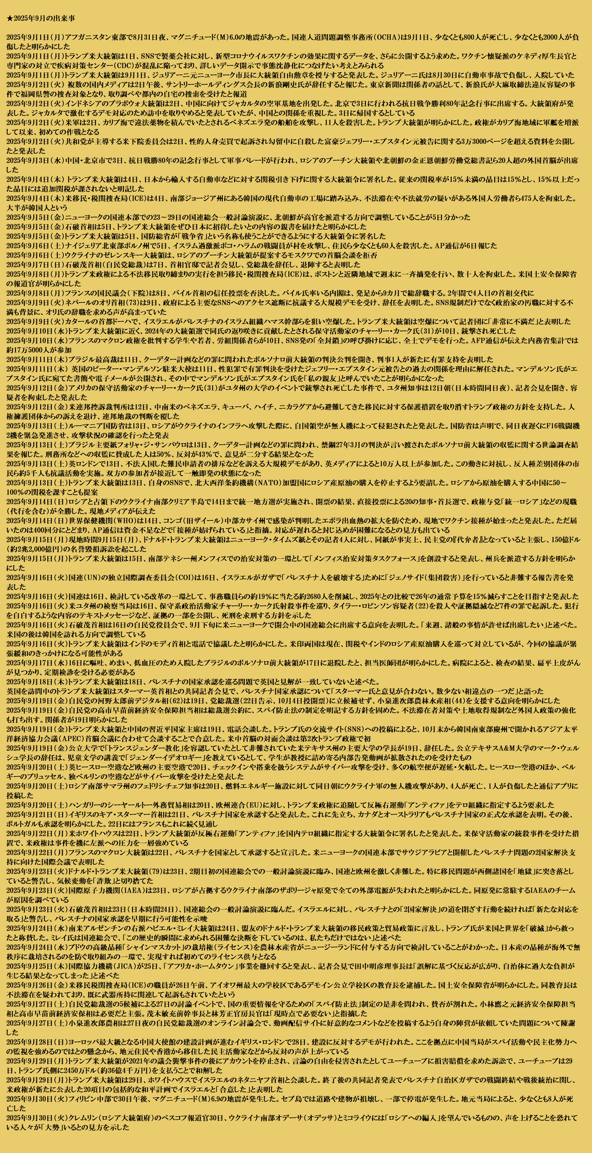 … | 17無題Name名無し 25/10/02(木)20:47:11 IP:175.177.*(itscom.jp)No.2664047+ 1759405631819.png-(1971156 B) ![]() ★2025年9月の出来事まとめ |