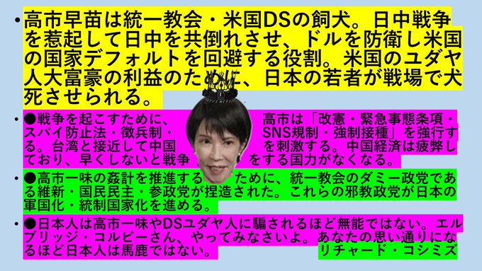 高市早苗は、日中戦争を起こすために起用された米国DSの傀儡です。