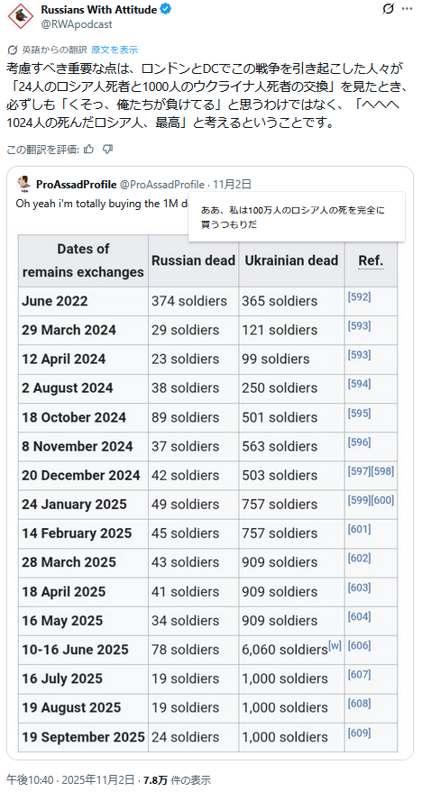| … | 52無題Name名無し 25/11/03(月)18:23:04 IP:106.150.*(dion.ne.jp)No.2673879+ 1762161784176.png-(929665 B) 本日のウクライナ方面 |