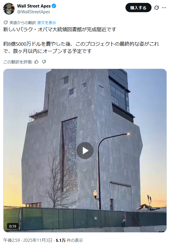 | … | 66無題Name名無し 25/11/03(月)20:37:43 IP:153.222.*(ocn.ne.jp)No.2673893そうだねx2 1762169863431.png-(418468 B) オバマ大統領図書館だよ |