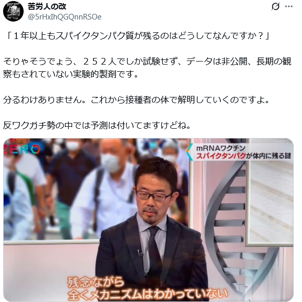| … | 61無題Name名無し 25/11/03(月)19:50:14 IP:106.150.*(dion.ne.jp)No.2673888そうだねx2 1762167014966.png-(707469 B) >今日の10時くらいにNHKで癌治療の為のワクチンが流行ってるって話が上がってたらしい |