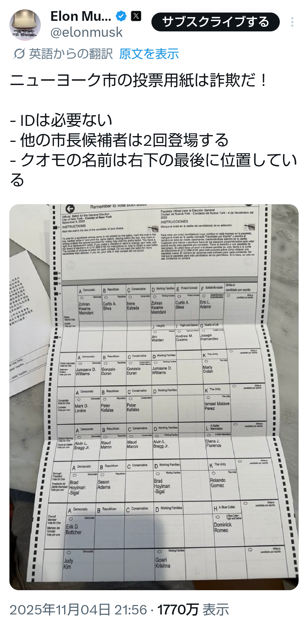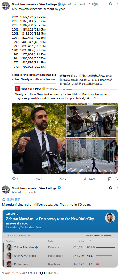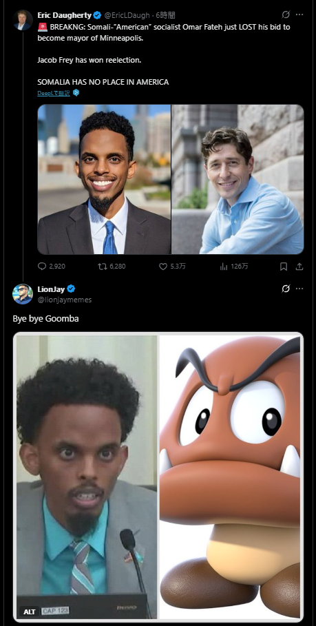 | … | 416無題Name名無し 25/11/06(木)10:02:59 IP:101.1.*(pikara.ne.jp)No.2674522そうだねx2 1762390979751.png-(427528 B) ミネアポリス市長選だよ |