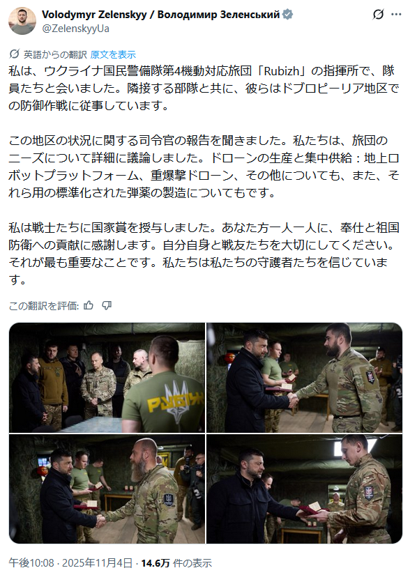 | … | 385無題Name名無し 25/11/06(木)00:14:08 IP:125.193.*(mesh.ad.jp)No.2674476そうだねx10 1762355648472.jpg-(26870 B) >また高市首相をウクライナに招待したことも明らかにしました。 |