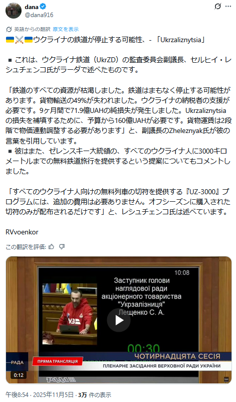 | … | 419無題Name名無し 25/11/06(木)11:30:37 IP:153.222.*(ocn.ne.jp)No.2674525+ 1762396237336.png-(208992 B) ウクライナの鉄道だよ |