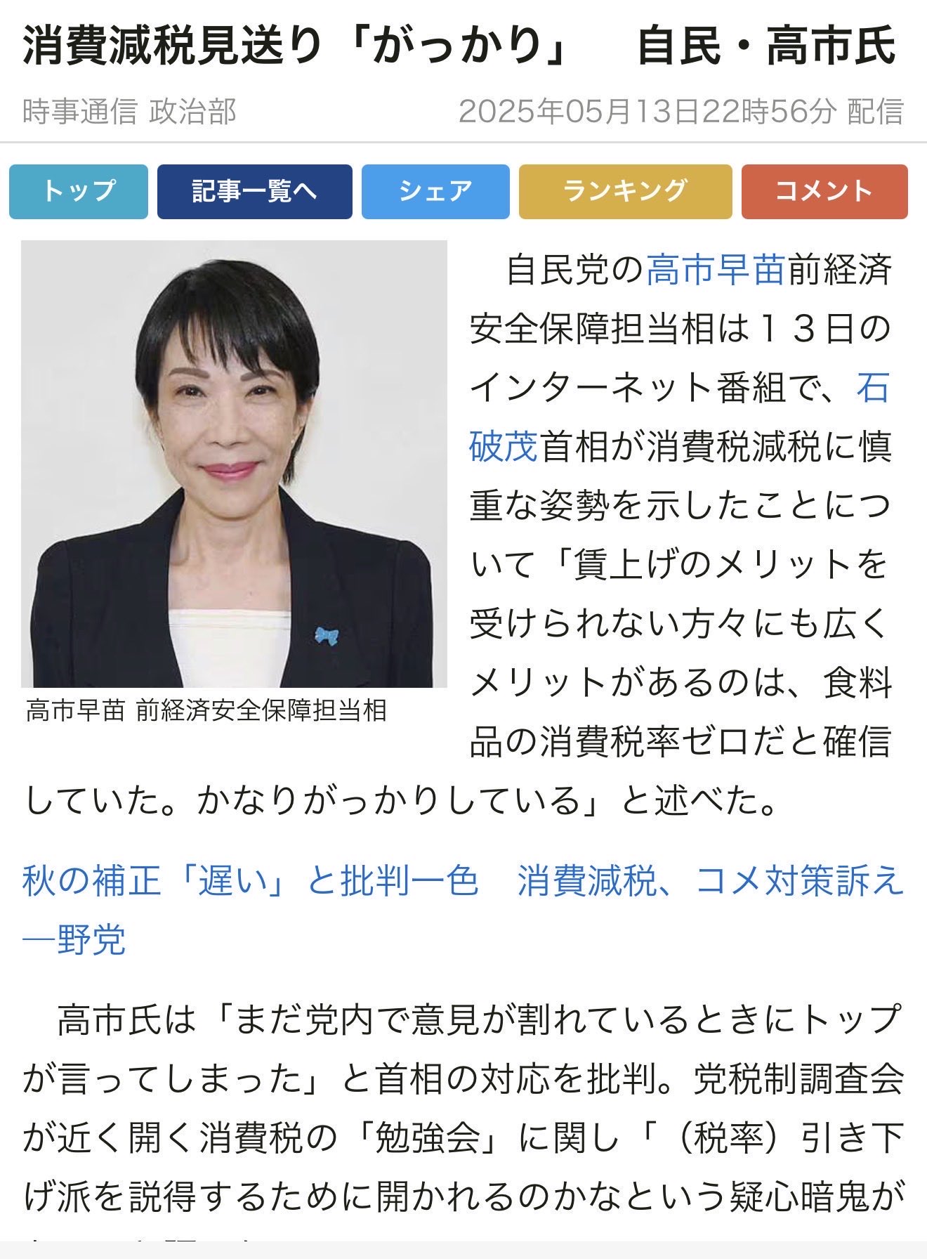 過去には消費税ゼロをあれだけ主張していたのに。あれって、石破おろしのネタに使っただけだったのね。