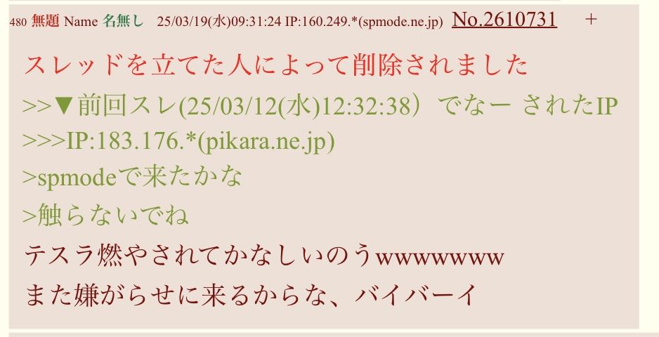 | … | 13無題Name名無し 25/11/11(火)13:29:14 IP:175.177.*(itscom.jp)No.2675424+ 1762835354206.jpg-(1726841 B) ★2025年3月〜4月の出来事まとめ |