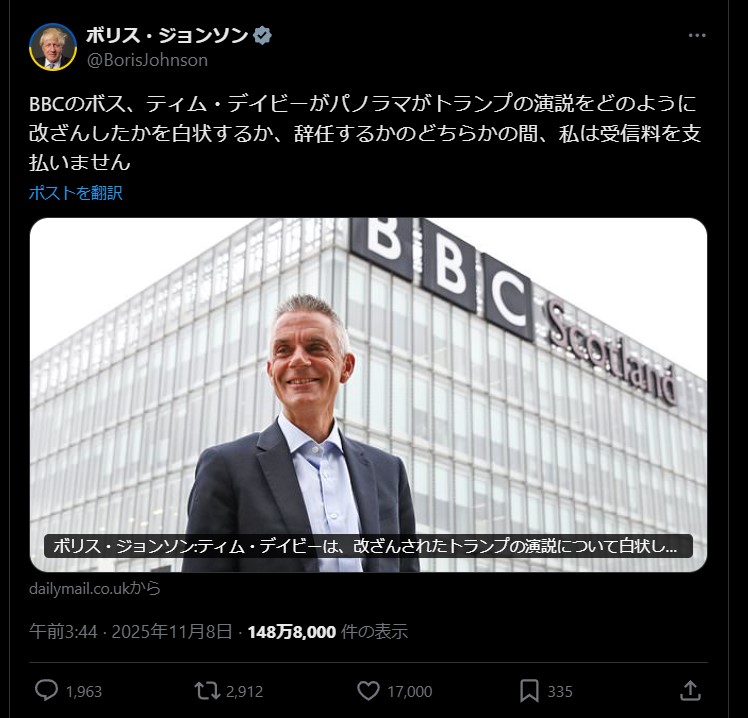 | … | 81無題Name名無し 25/11/11(火)18:43:11 IP:14.13.*(enabler.ne.jp)No.2675548そうだねx2 1762854191198.jpg-(124332 B) BBCの話が英国でどれだけの騒動か分かりやすいまとめがあった |