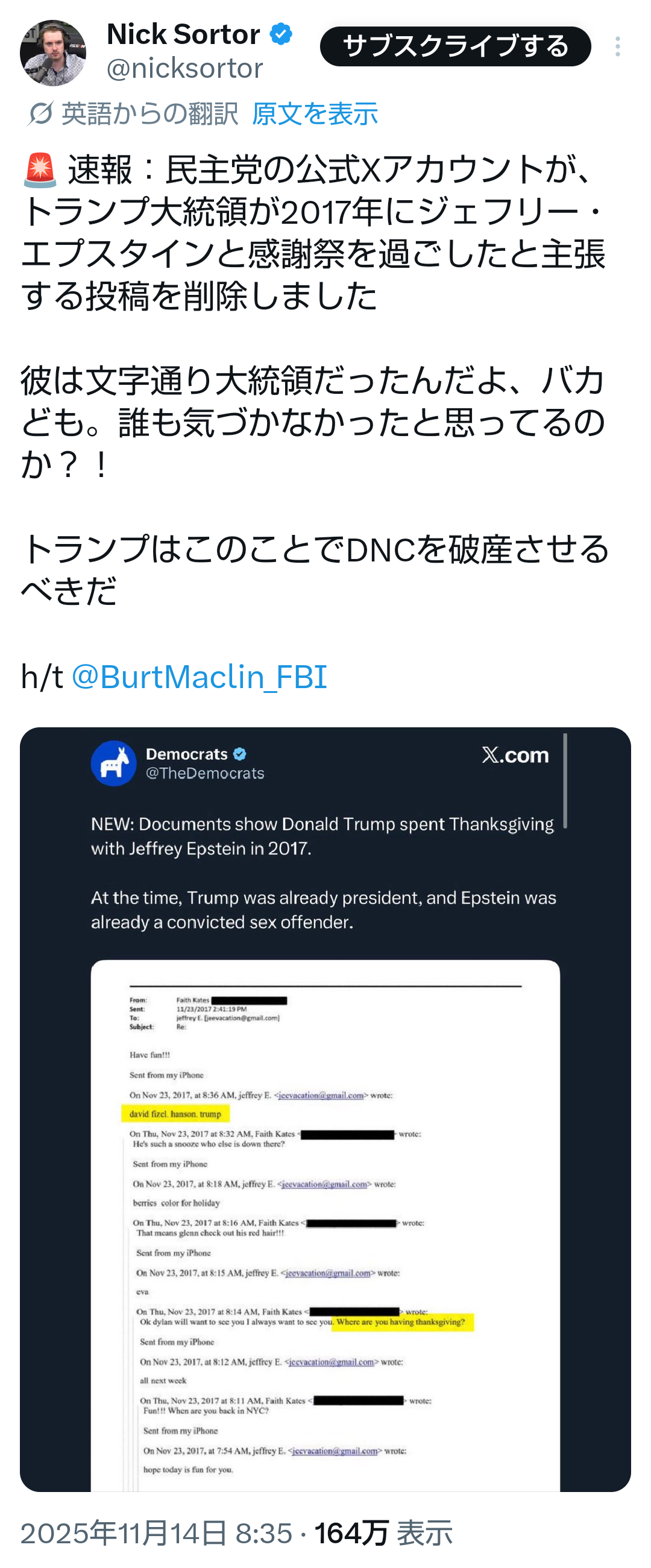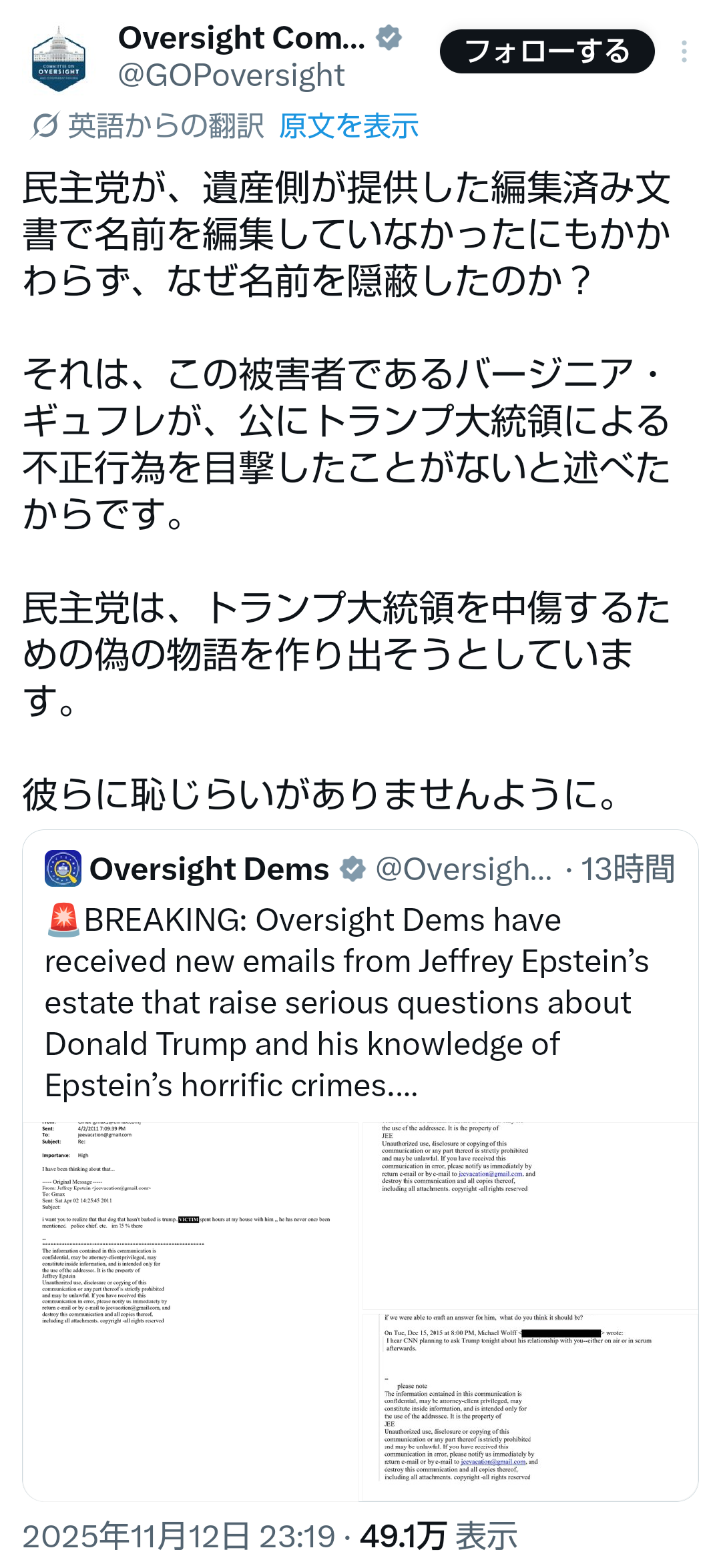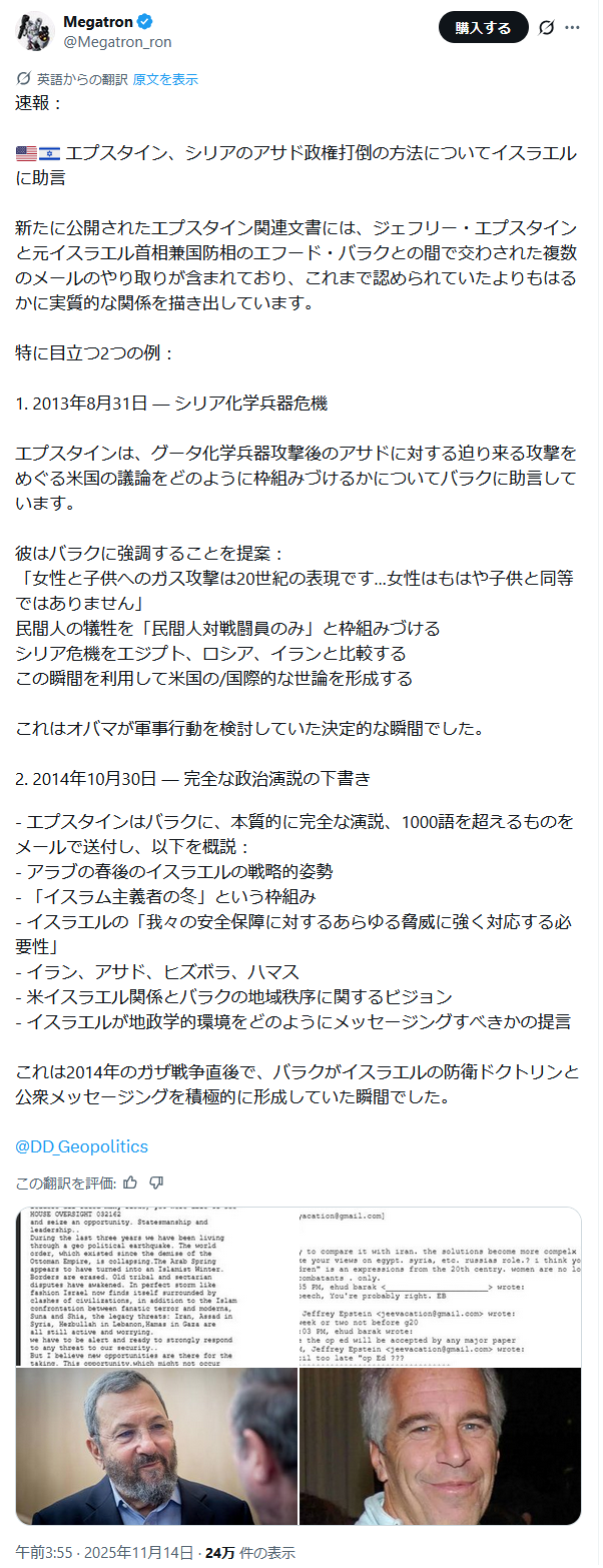 | … | 43無題Name名無し 25/11/11(火)14:31:44 IP:117.55.*(ipv4)No.2675455そうだねx2https://x.com/disclosetv/status/1988064087029543152 |