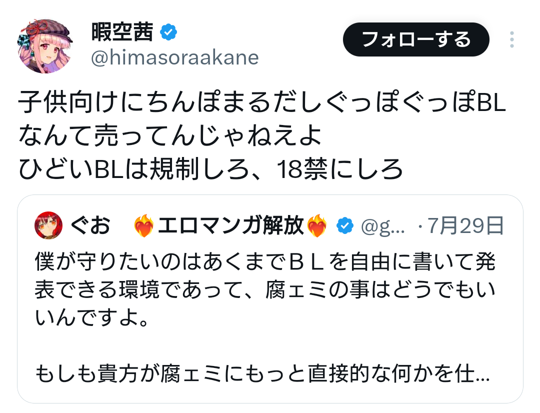 | … | 32無題Name名無し 25/11/11(火)13:55:50 IP:126.63.*(bbtec.net)No.2675443そうだねx14自分の好きな作品があるんだけどその作者はアベガーとか叫ぶ典型的なパヨ駄サイクルに堕ちたやつなんだよね |