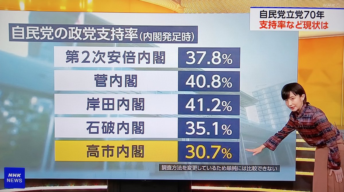 女子アナ「自民党の政党支持率、2012年に政権復帰してから、内閣発足時としては、最低でした」