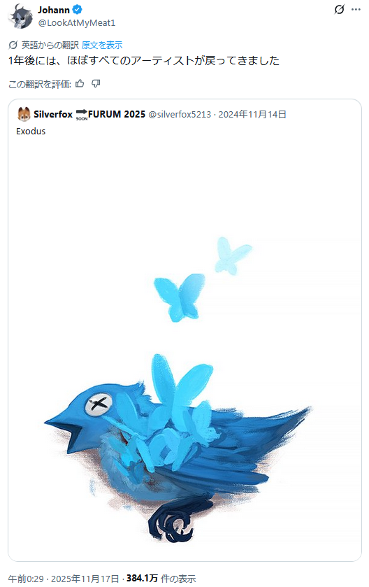 | … | 932無題Name名無し 25/11/22(土)18:58:39 IP:125.193.*(mesh.ad.jp)No.2678203+>学習元の誰の権利が主張できるのか判断できるようなものじゃないんですよね |