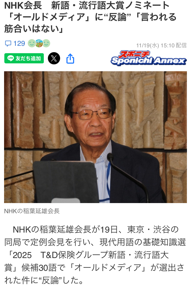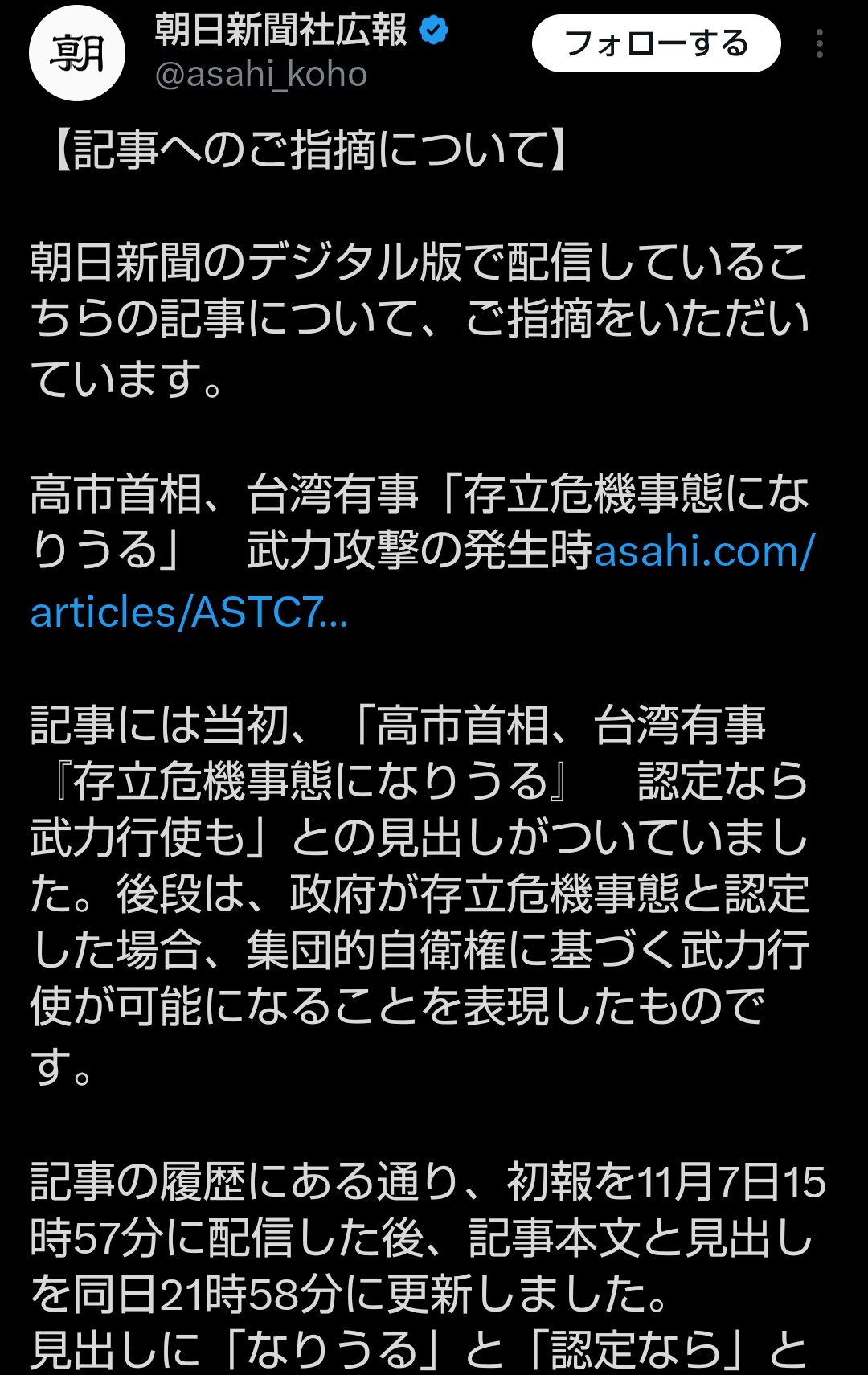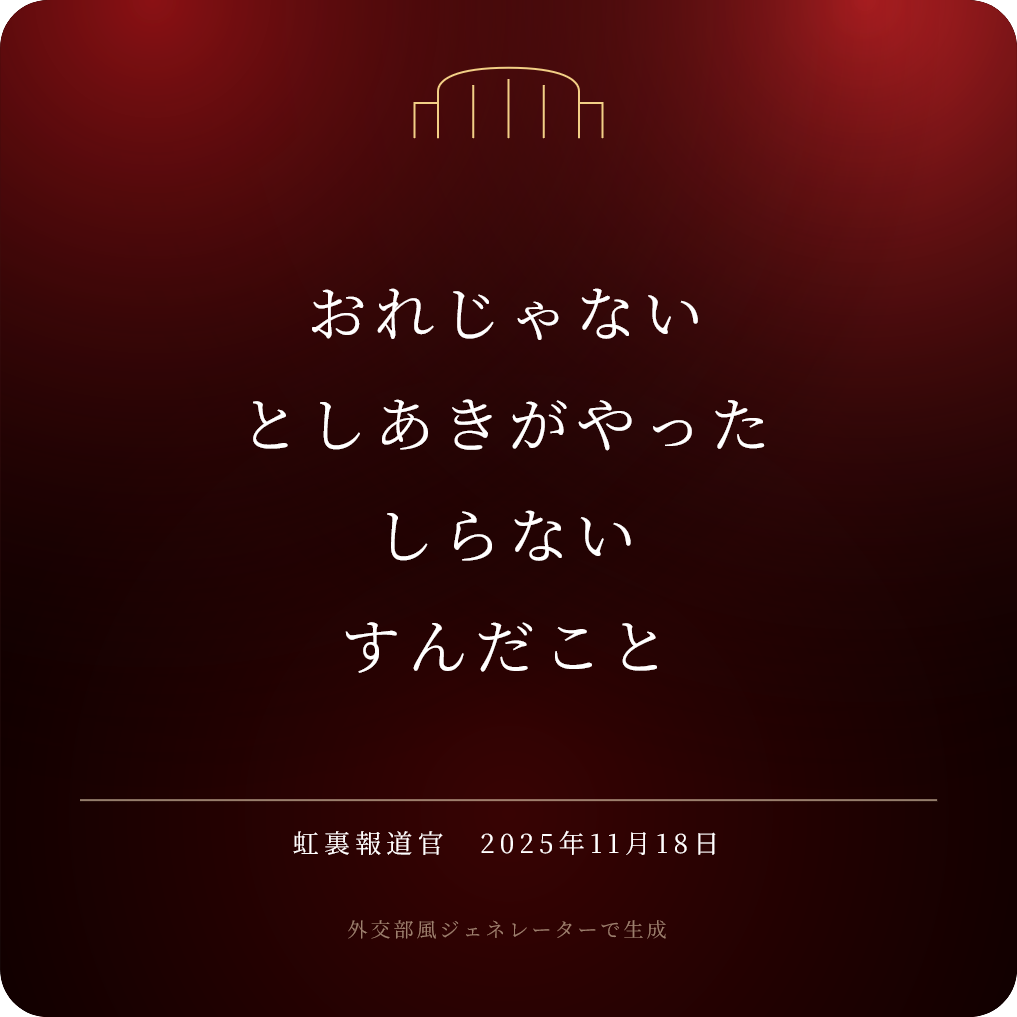 | … | 73無題Name名無し 25/11/17(月)19:18:22 IP:106.155.*(au-net.ne.jp)No.2677038+>早速NHK7時のニューストップで報道してて笑う |