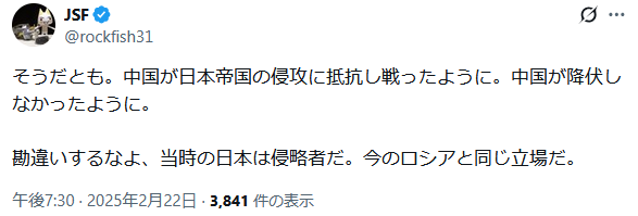 | … | 953無題Name名無し 25/11/22(土)22:17:58 IP:217.178.*(transix.jp)No.2678228そうだねx10日本敗戦時は穴蔵住まいの山賊で建国すらしていなかったのに何言ってんだ過ぎる |