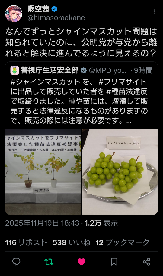 | … | 10無題Name名無し 25/11/17(月)09:34:41 IP:175.177.*(itscom.jp)No.2676880そうだねx2 1763339681591.png-(2920769 B) 暇空茜さん関連まとめ |