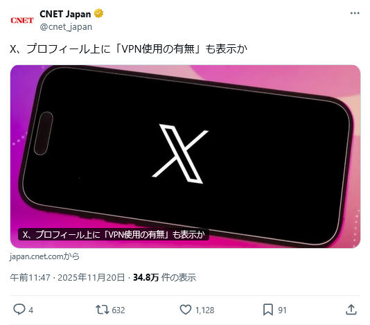 | … | 921無題Name名無し 25/11/22(土)17:54:04 IP:60.104.*(bbtec.net)No.2678191+まあXも国識別されてVPNは不明みたいに表示されるらしいから |