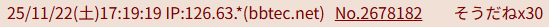 | … | 912なーNameなー 25/11/22(土)17:19:19 IP:126.63.*(bbtec.net)No.2678182そうだねx33なー |