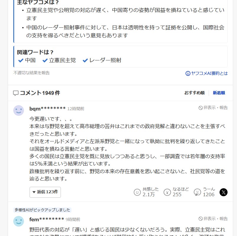 | … | 46無題Name名無し 25/12/07(日)21:34:28 IP:14.13.*(enabler.ne.jp)No.2681560そうだねx2 1765110868842.jpg-(143297 B) 遂に中国大使を呼び出して抗議 |