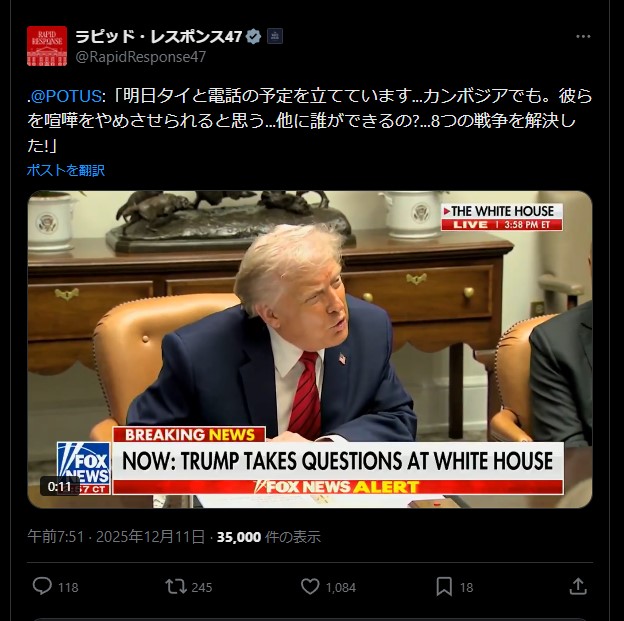 | … | 978無題Name名無し 25/12/16(火)15:10:55 IP:117.55.*(ipv4)No.2683064そうだねx1https://x.com/whitehouse/status/2000671104004682113 |