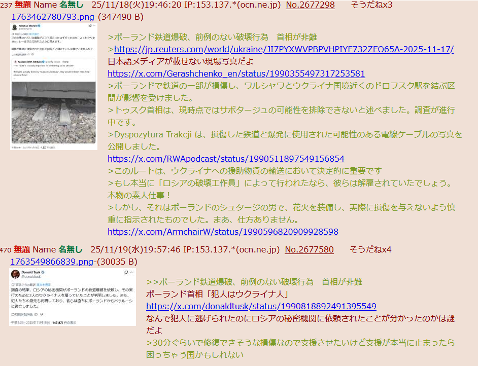 | … | 17無題Name名無し 25/12/07(日)19:17:43 IP:175.177.*(itscom.jp)No.2681499+ 1765102663294.png-(2923890 B) ★2025年11月の出来事まとめ |