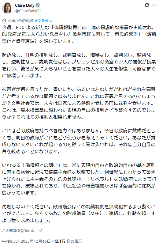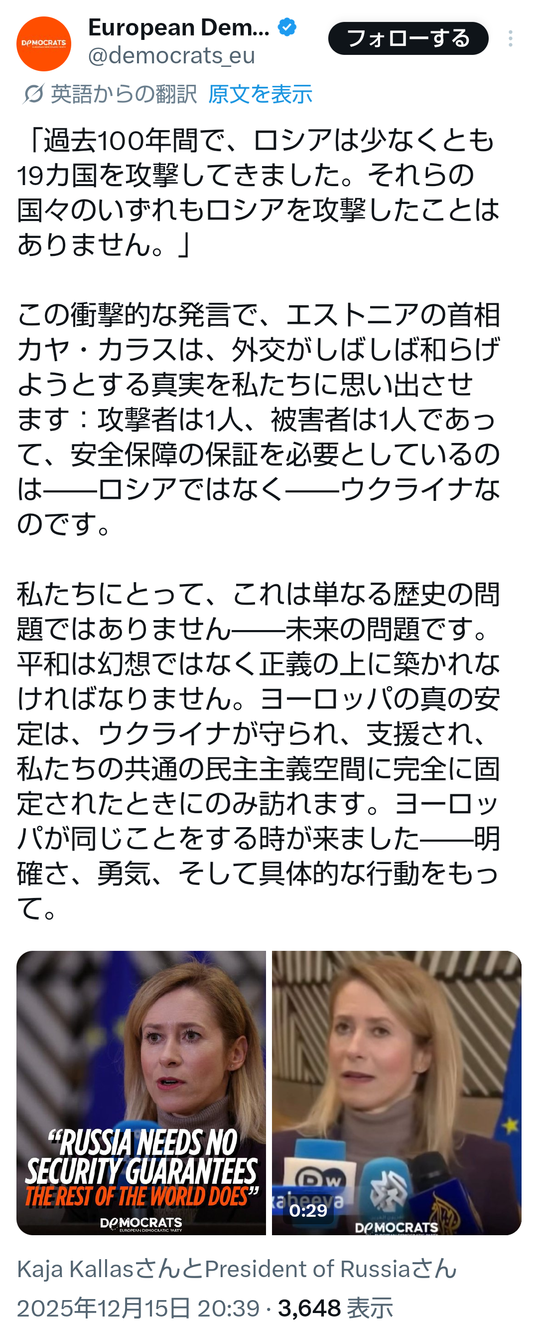 | … | 709無題Name名無し 25/12/21(日)20:39:14 IP:150.249.*(nuro.jp)No.2684205+ 1766317154093.png-(1208135 B) >https://x.com/democrats_eu/status/2000531104424407342 |