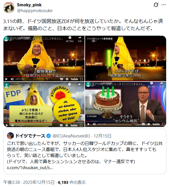 | … | 641無題Name名無し 25/12/21(日)11:47:09 IP:49.98.*(spmode.ne.jp)No.2684098そうだねx2>そして捏造すればその反動が自分達に返ってくる事を想定してない… |