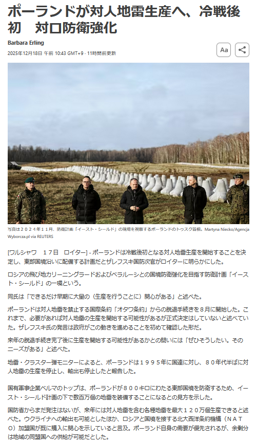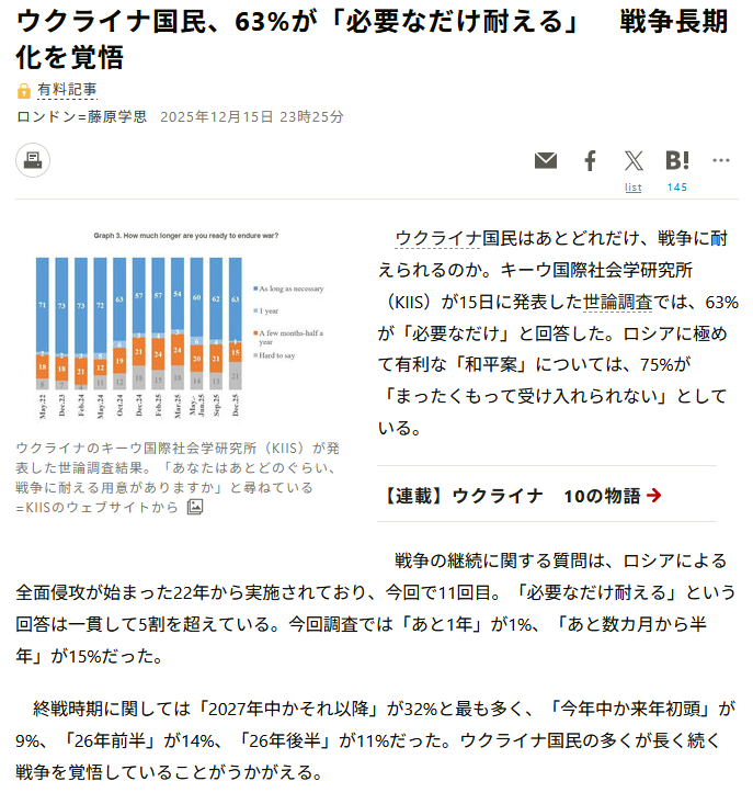 | … | 72無題Name名無し 25/12/16(火)23:36:46 IP:180.38.*(ocn.ne.jp)No.2683227+ウクライナ安全保障に欧州主導の平和維持部隊 10カ国首脳ら合意 |